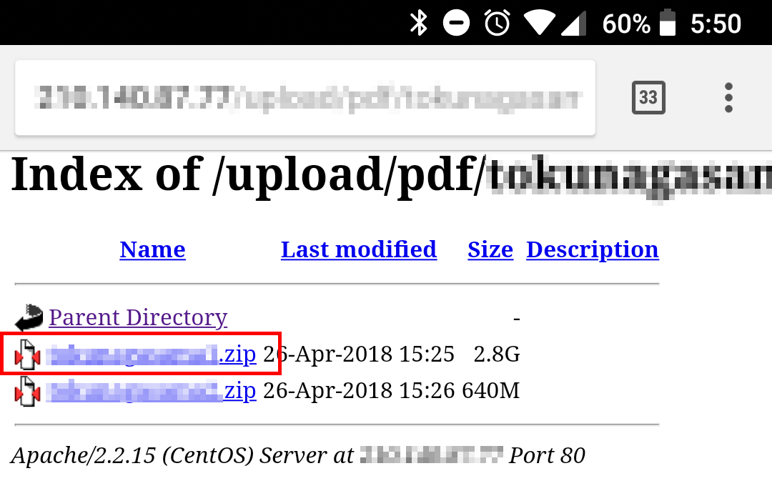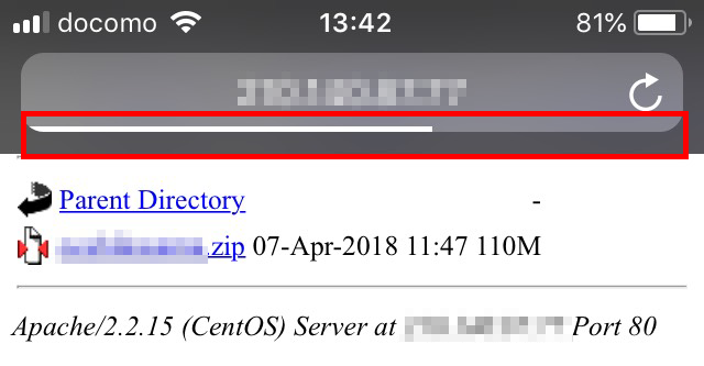 ZIPファイルをタップして、アドレスバーの下のシークバーが最大になるまで、ダウンロード完了を待ちます。