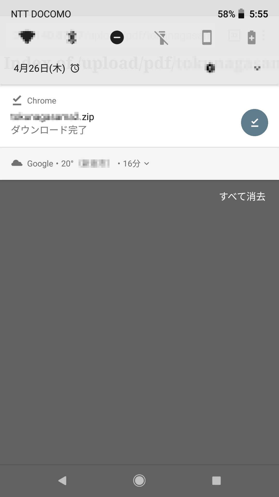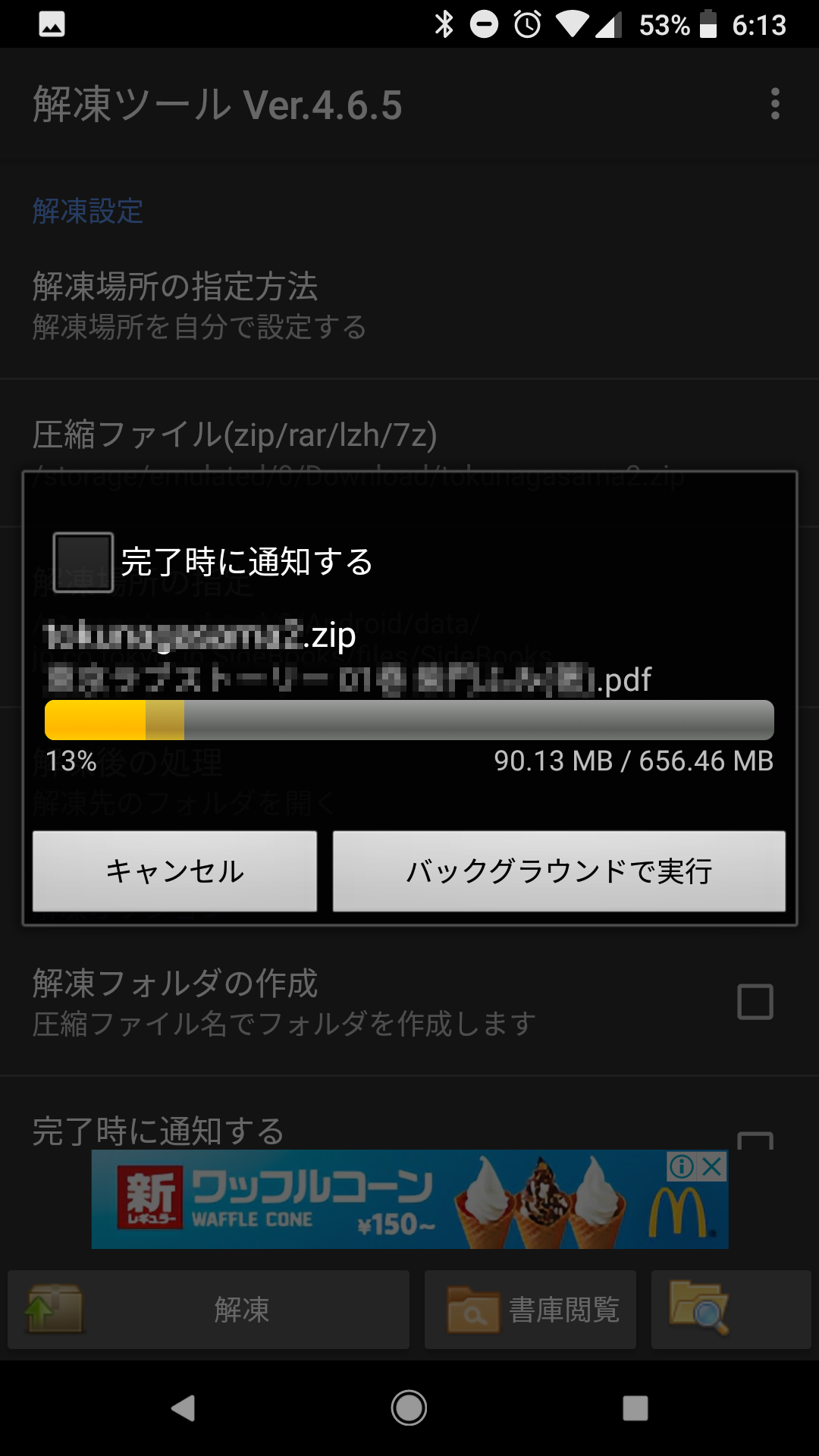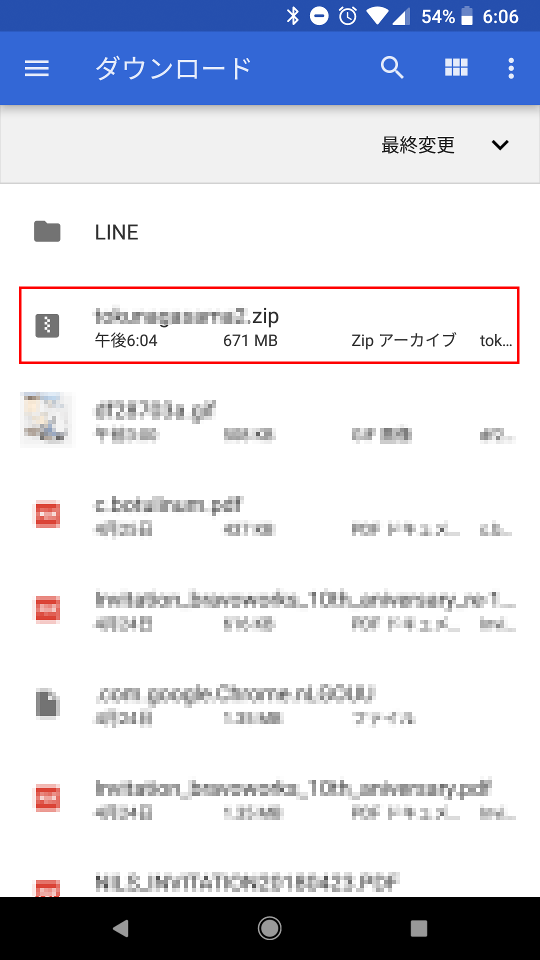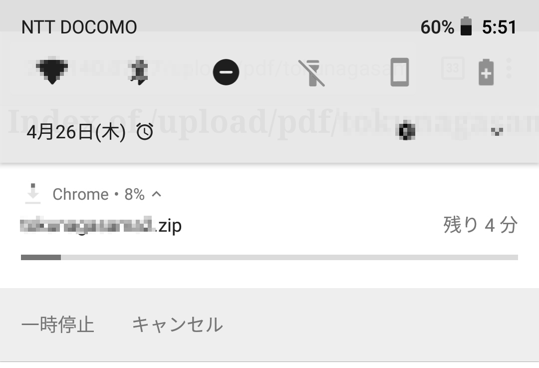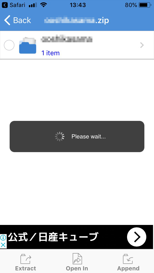 ZIPファイルをタップして、シークバーが最大になるまで、ダウンロード完了を待ちます。