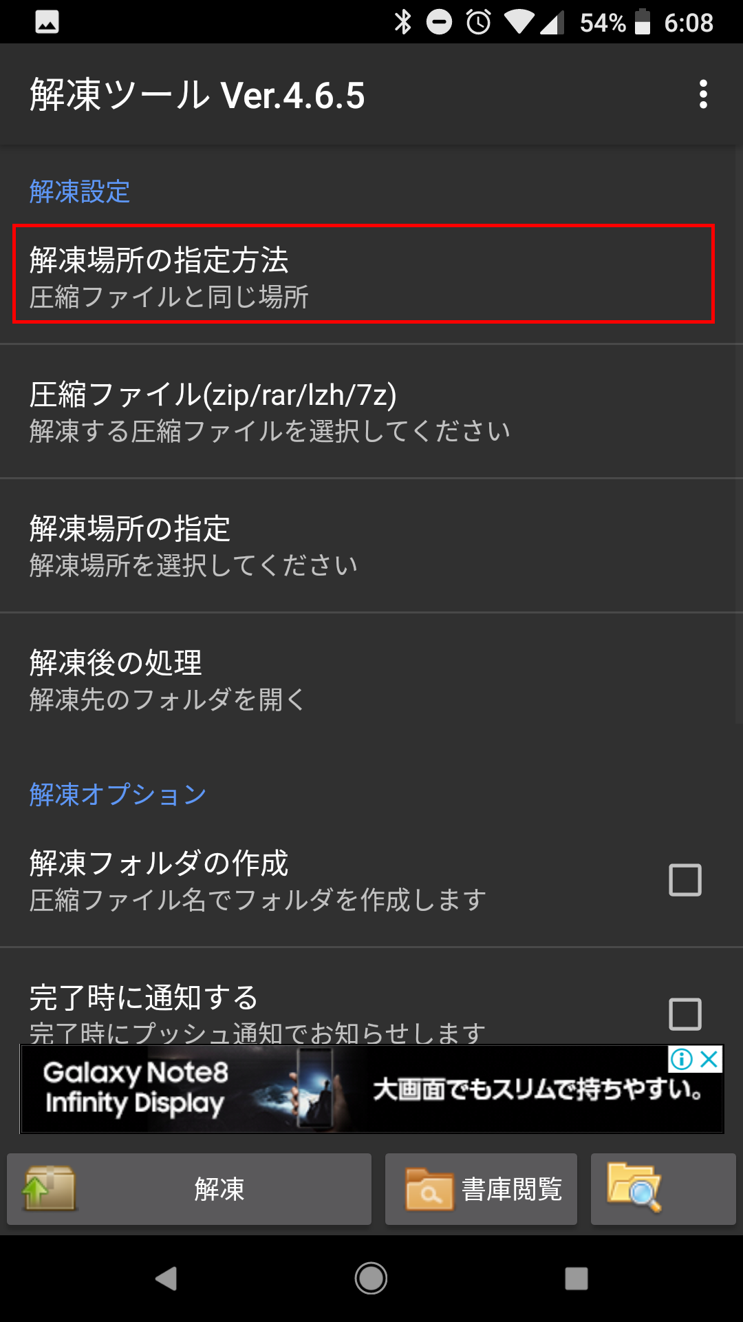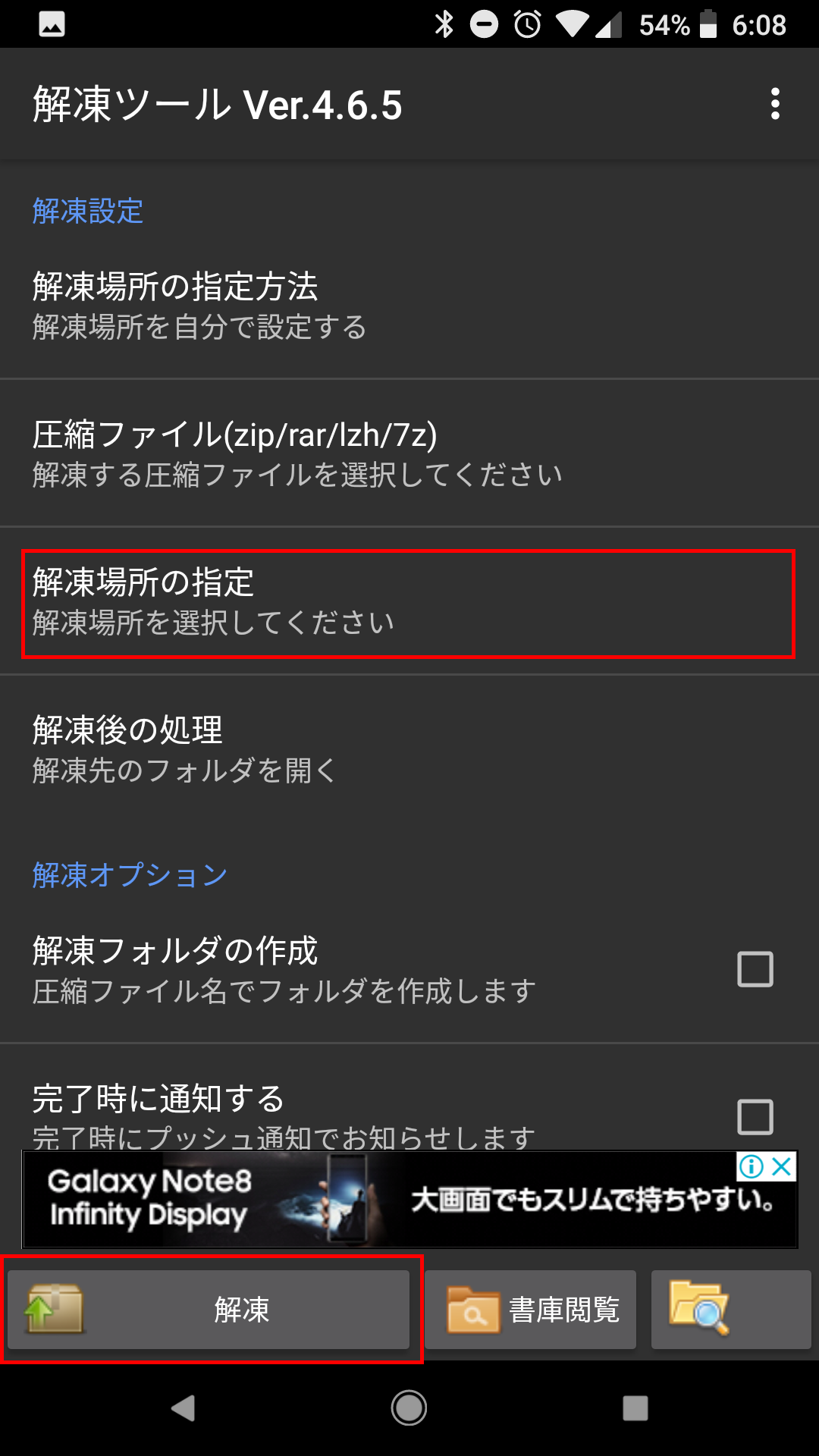 SideBooksのホームフォルダが指定されたら、下部の「解凍」ボタンをタップします