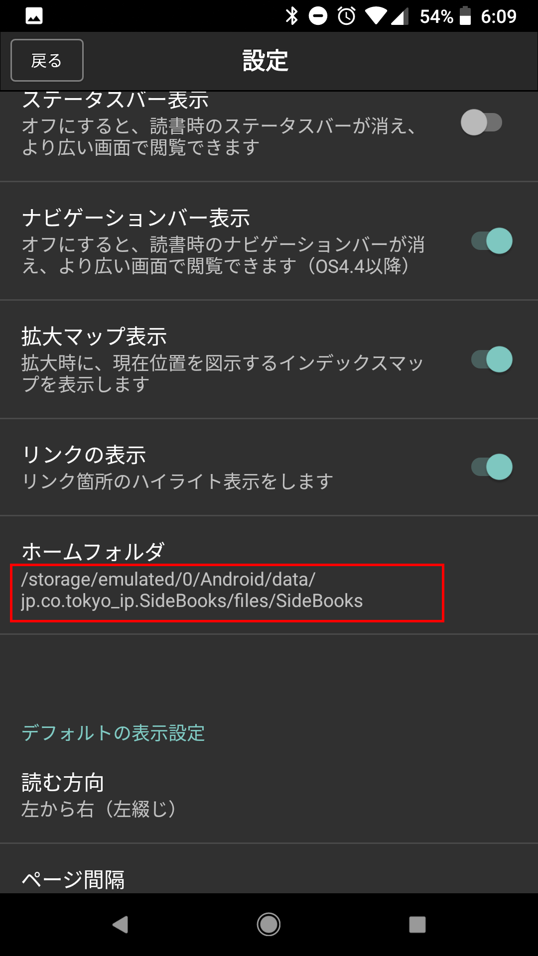 SideBooksのホームフォルダを後ほど、ZIPファイル解凍作業の際に使いますので、ホームフォルダの場所を確認しておきます。